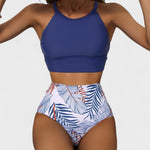 Este biquíni de cintura subida é a escolha ideal para quem procura aliar conforto, estilo e um visual contemporâneo. O top de corte desportivo oferece suporte extra e liberdade de movimentos, enquanto a parte de baixo com estampado botânico confere um ar fresco e sofisticado.