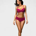 Descobre o biquíni que combina elegância e bem-estar em cada detalhe. Com um design cruzado na parte de cima e cueca de cintura média com ligeiro franzido, realça as curvas de forma subtil e sofisticada.