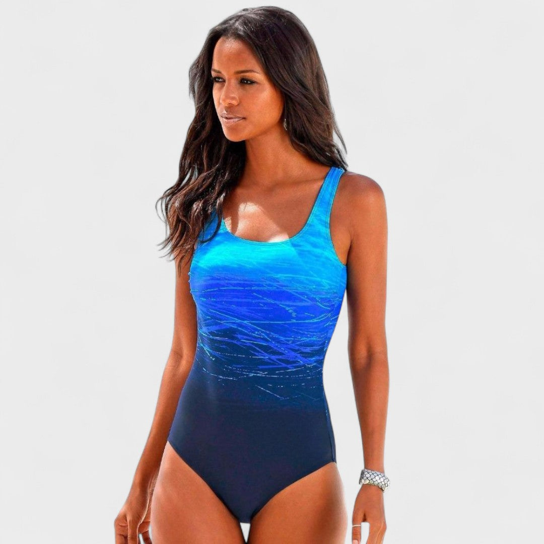 Este fato de banho une o melhor da simplicidade com um toque de ousadia. O degradé vibrante em tons de roxo e preto cria um visual moderno e feminino, perfeito para destacar-se com sofisticação à beira-mar ou na piscina. Com alças largas e um corte que valoriza a silhueta, é ideal para quem procura conforto sem abdicar do estilo. Seja a caminhar na areia ou a nadar com confiança, este modelo é o seu aliado para um verão cheio de atitude.