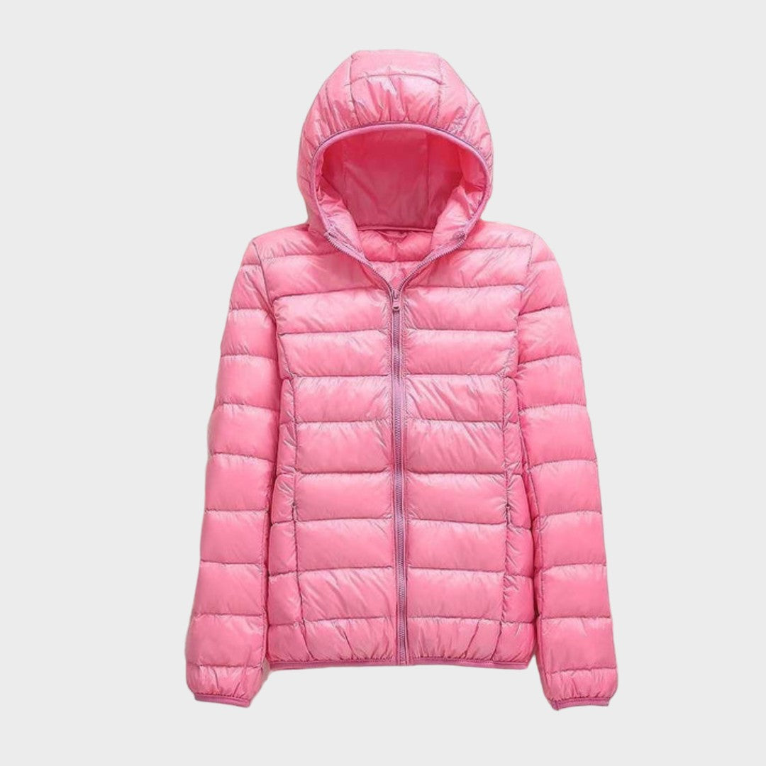 A tecnologia impermeável garante que fiques protegida de chuvas inesperadas, enquanto o enchimento suave em penas te mantém quente sem tornar o casaco volumoso. As pregas refinadas acrescentam um toque de elegância, tornando este casaco perfeito tanto para looks casuais como para conjuntos mais sofisticados.