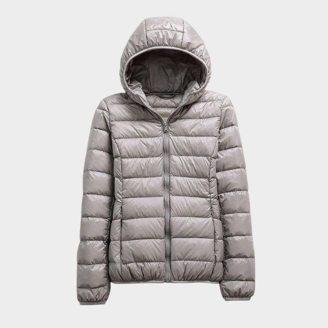 A tecnologia impermeável garante que fiques protegida de chuvas inesperadas, enquanto o enchimento suave em penas te mantém quente sem tornar o casaco volumoso. As pregas refinadas acrescentam um toque de elegância, tornando este casaco perfeito tanto para looks casuais como para conjuntos mais sofisticados.
