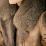 Este luxuoso casaco de pele de cordeiro para mulheres combina conforto, estilo e aquecimento.
