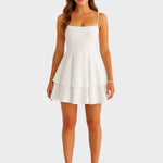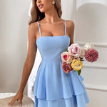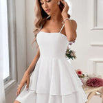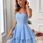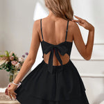 Alice - Mini vestido sem costas com alças com laço e saia em camadas