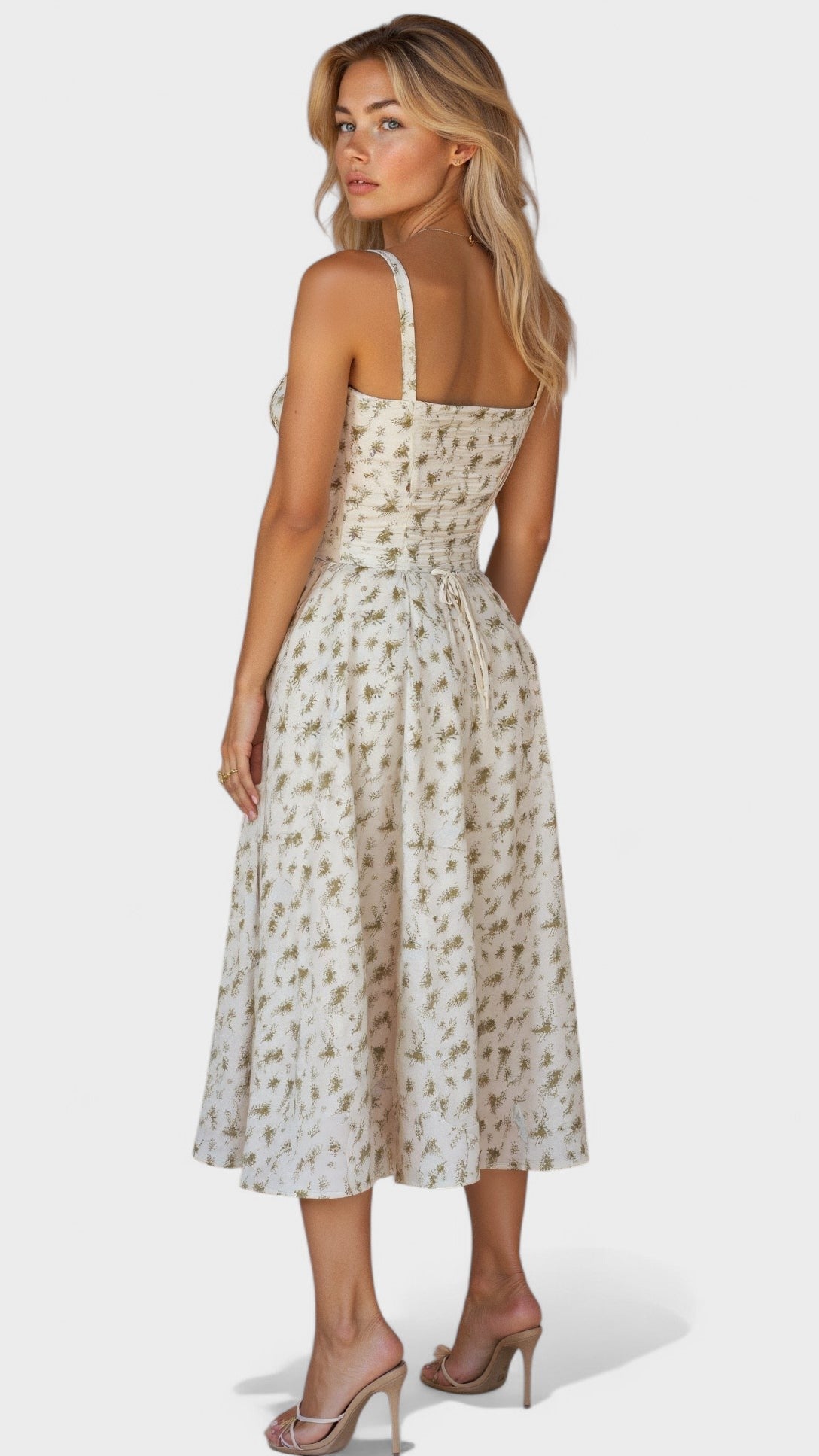 Descobre a leveza dos dias ensolarados com o vestido Vivienne – uma peça encantadora que celebra a feminilidade com um toque vintage. Com um padrão floral delicado e corte midi que flui com graça, este vestido é perfeito para passeios de verão, brunches elegantes.