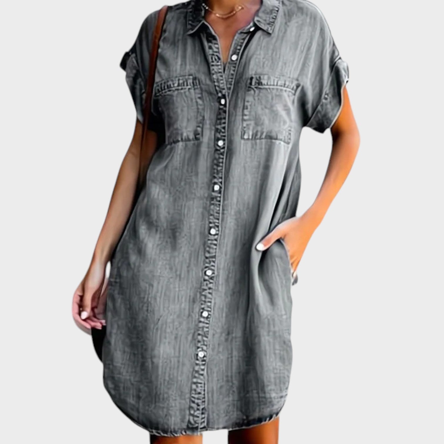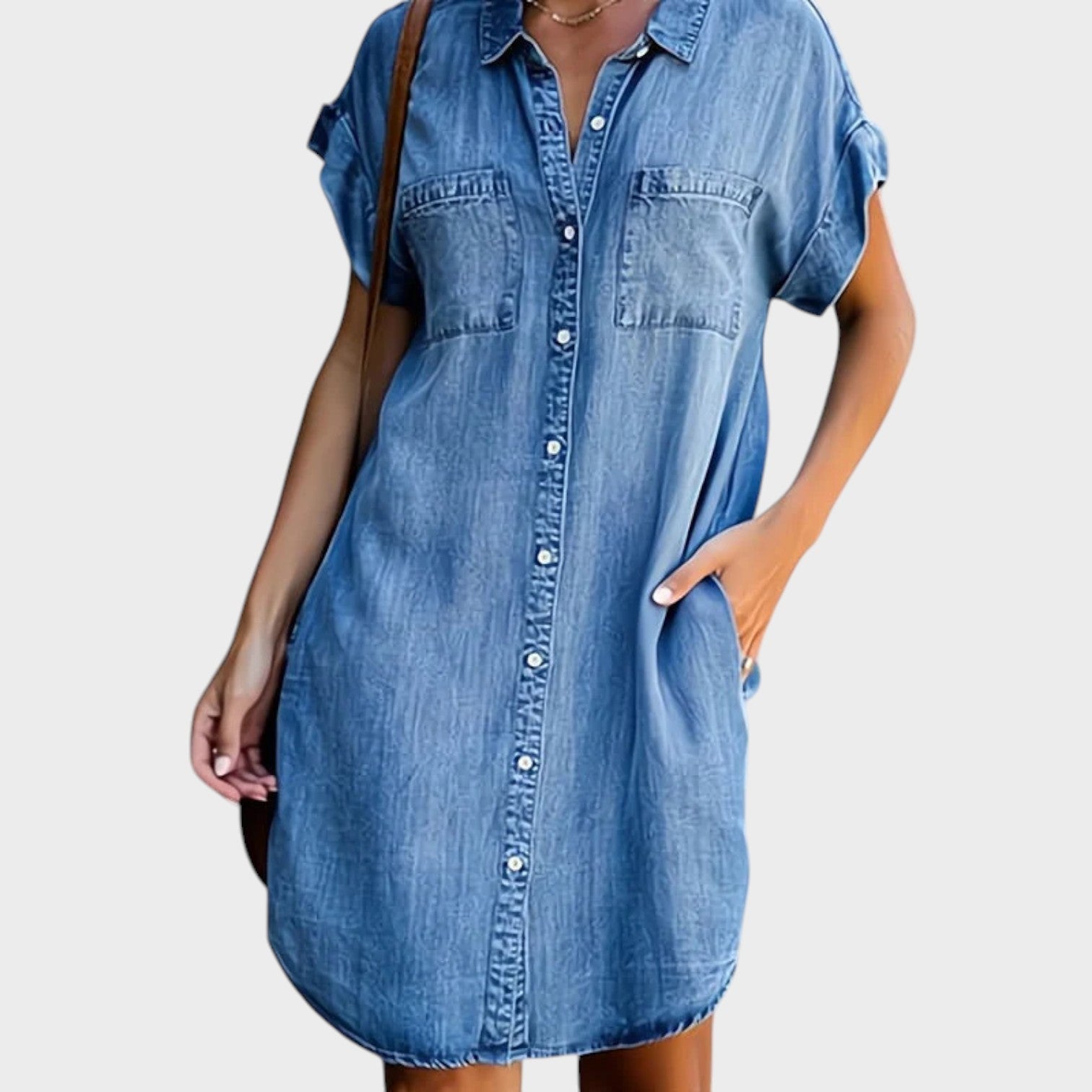 • Tecido de ganga de qualidade superior: Confeccionado em ganga macia, este vestido oferece durabilidade e conforto, ideal para o uso diário sem comprometer o estilo.