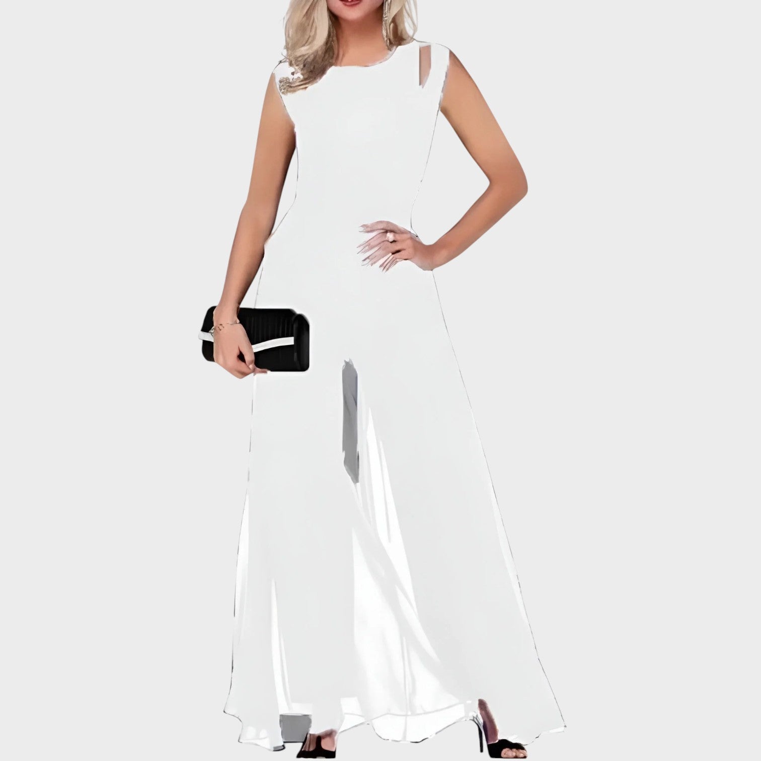 Este vestido comprido é a definição de elegância moderna. Com um corte fluido e um design sem mangas que valoriza os ombros, apresenta um detalhe subtil de abertura na perna que adiciona um toque de ousadia com classe. Ideal para eventos formais, jantares especiais ou cerimónias, oferece movimento, sofisticação e uma silhueta encantadora.