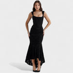 • Decote quadrado: Uma forma estruturada e elegante que valoriza a linha do colo.