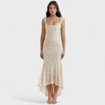 O Vestido de Silhueta Romântica personifica a elegância atemporal com sua delicada renda e modelagem que valoriza a silhueta. Perfeito para casamentos, festas no jardim ou qualquer momento que peça um toque de sofisticação suave.