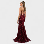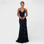 Este bonito vestido até ao chão com pormenores de lantejoulas foi feito para impressionar. A silhueta justa acentua elegantemente as suas curvas, enquanto as lantejoulas brilhantes dão um toque de luxo. O decote em V profundo e o corte sofisticado tornam este vestido ideal para galas, casamentos e eventos formais onde quer brilhar.