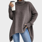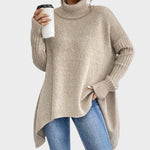 Esta camisola de gola alta é a escolha perfeita para os dias frescos — com o seu material macio, o corte largo e o design clássico, oferece conforto e estilo num só.