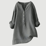Com um design simples e intemporal, esta túnica em linho de tom vermelho vibrante é perfeita para quem valoriza conforto com um toque de sofisticação. O corte solto, a gola em V e os botões frontais criam um visual descontraído mas refinado, ideal para o dia a dia ou para combinações mais elegantes. As mangas compridas com possibilidade de dobrar e o tecido leve tornam esta peça tão versátil quanto prática.