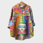 Design único e artístico: O estampado floral vibrante transforma qualquer look simples num visual cheio de cor e personalidade.