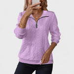 Descubra a Camisola de manga comprida pensada para lhe oferecer calor, conforto e uma silhueta favorecedora num só. A textura macia em malha entrançada e o elegante detalhe de meia-fecho criam um look cuidado, enquanto o corte descontraído assenta suavemente na zona abdominal e nos braços, proporcionando um efeito adelgaçante sem volume extra.