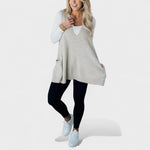 Elegante e quente, este colete é adorado pelos nossos clientes! Este colete fluido e felpudo é perfeito para sobreposição, com seu comprimento longo e corte em A que cria uma silhueta lisonjeira. O material tipo suéter leve oferece calor sem pesar, enquanto a cor mesclada e os detalhes em ribana acrescentam um toque de estilo.